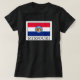 Das Material ist eigentlich gute Qualität, der Stoff ist nur etwas verzogen so dass der Drück leicht schief aussieht. Der Druck ist gute Qualität, habe das T-Shirt schon einige male gewaschen.