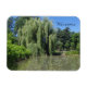 Der Forest Park in St. Louis, Missouri ist Zuhause zu vielen wunderschönen Sehenswürdigkeiten und Geräuschen, einschließlich dieses einen kleinen Teich mit Lilienpfählen bedeckt mit einem großen und alten weinenden Weiden, die an seinen Ufern wachsen.