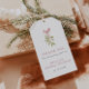 Feiern Sie die Braut mit diesem minimalistischen Wintergeschenk-Tag mit einem Aquarellbild eines Mistletos mit einer weichen staubigen Rose, einem rosa Bug und einem passenden Brautparty auf der Rückseite.