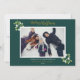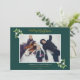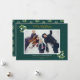 Modernes Foto mistletoe gold Drehbuch Frohe Weihnachtskarte. Hübsche Aquarellmücken hängen über dem schicken Goldskript Frohe Weihnachtstypografie. Personalisieren Sie das Foto, die Urlaubsnachricht, den Familiennamen und das Datum auf der Vorderseite. Die Rückseite weist ein passendes Misletoe-Muster auf. Sie können die Hintergrundfarbe an Ihr Urlaubsthema anpassen. Entwickelt von Thisisnotme©