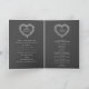 Mistletoe handgezeichnet botanische Kunst in einem herzförmigen Hochzeitsprogramm mit einem Foto auf der Rückseite im Winter weiß und sehr dunkelkohle grau. Personalisieren Sie diese Hochzeit gefaltet 4-Seiten-Programm mit Ihren eigenen feierlichen Details. Einfache Herz-Botanische Linie Kunst mistletoe Blätter und Beeren Design in dunkelkohle grau und weiß. Andere Farben und passende Hochzeitsartikel sind erhältlich. © Original zeichn und Design von Sarah Trett exklusiv für www.mylittleedenweddings.com auf Zazzle.