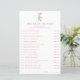 Dieses Brautparty "er sagte, sie sagte" Spielblatt zeigt ein Aquarellfehlchen-Design mit einer weichen, staubigen Rose und einem passenden Muster auf der Rückseite.