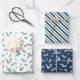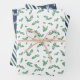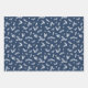Blaue, grüne und weiße Weihnachtsfolien mit Mustern in passenden Farben: eine mit grünen Mistelzweigen. Eine mit feinen blauen, grünen und weißen Streifen. Und eine in marineblau mit weißen Mistelzweigen.