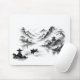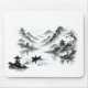 A mousepad featuring a lake against misty mountains.