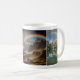 Une tasse magique avec une chaîne de montagnes époustouflante baignée par la lumière douce d'un soleil couchant, avec un arc-en-ciel vibrant en voûte à travers le ciel. Parfait pour votre café ou thé du matin, cette tasse vous transportera dans un monde serein et onirique.