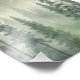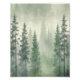 Ein etherisches und atmosphärisches digitales Bild oder Bild, das einen dichten Nadelwald darstellt, der in dicken Nebel oder Nebel gehüllt ist. Die hohen, schlanken Kiefern- und immergrünen Bäume bilden Schichten von Tiefe, wobei die Vorderbäume deutlich mehr Details und tiefere grüne Farbtöne zeigen, während die Bäume, die in den Hintergrund zurückgehen, in sanfte, blasse und entsalzte Schattierungen von Weisheit und Grau verblassen. Die Stimmung ist insgesamt ruhig, geheimnisvoll und ruhig, und erinnert an das Gefühl eines ruhigen Morgens tief in der Wildnis.