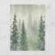 Ein etherisches und atmosphärisches digitales Bild oder Bild, das einen dichten Nadelwald darstellt, der in dicken Nebel oder Nebel gehüllt ist. Die hohen, schlanken Kiefern- und immergrünen Bäume bilden Schichten von Tiefe, wobei die Vorderbäume deutlich mehr Details und tiefere grüne Farbtöne zeigen, während die Bäume, die in den Hintergrund zurückgehen, in sanfte, blasse und entsalzte Schattierungen von Weisheit und Grau verblassen. Die Stimmung ist insgesamt ruhig, geheimnisvoll und ruhig, und erinnert an das Gefühl eines ruhigen Morgens tief in der Wildnis.