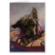 Misty die bezaubernde kleine Poodle-Mix von Traci Van Wagoner gemalt, die ein auffallendes, bräunliches und rotes Kissen mit einem Ohr hoch auf ihrem Kopf.