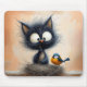 Mit Augen Katze mit einem Wurm für einen Vogel Mousepad
