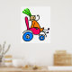 Niedlicher Cartoon skurrile Illustration eines glücklichen mit Behinderung Mädchens, das von ihrem funky rosa Rollstuhl winkt. Einfach anpassen und Ihre eigene Hintergrundfarbe auswählen oder Text hinzufügen. Bilder auf verschiedenen Geschenken und Produkten erhältlich.
