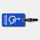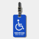 Gepäckanhänger mit weißem mit Behinderung Symbol auf blauem Hintergrund und Vorlagenfeldern für Ihre Nachricht.