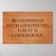 Seien Sie großzügig, denn es ist ansteckend - ein inspirierendes Zitat über den Hintergrund der Holzstruktur