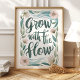Mit diesem ruhigen "Grow with the Flow"-Kunstdruck lassen Sie sich die Schönheit des Wandels und der Anpassungsfähigkeit entfalten. Mit einem handgeschriebenen Zitat in beruhigenden Farbtönen grün und blau, umgeben von zarten Blumenakzenten, dient dieses Stück als sanfte Erinnerung, Widerstandskraft lassen und Ruhe in den natürlichen Rhythmen des Lebens zu finden. Ideal, um Ihrer Zuhause- oder Büroeinrichtung eine Touch der Ruhe hinzuzufügen.