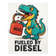 Eine Grafik, die einen Dinosaurier zeigt, der Diesel aus einer Brennstoffdose trinkt.