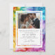 Mit der "Ethereal Bloom Collection", einer horizontalen rett-the-date-Karte, stellen wir eine atemberaubende Ergänzung unserer Kollektion dar. Der Hintergrund zeigt einen faszinierenden Spirituosenwirl in satten Farbtönen von Blues, Purpur, Rot, Orangen und Grüntönen, hervorgehoben durch zarte, doppelt belichtete Lilien, die ein Gefühl von traumhafter Eleganz wecken. Die Kartenvorderseite beginnt mit der Beschriftung "Rett unser Datum", gefolgt von den Namen des Paares. Im Folgenden finden Sie eine Liste der Kalender für diesen besondere Anlass, in der Sie den wichtigen Termin- und Veranstaltungsort inmitten der faszinierenden "Ätherischen Blüten"-Kunstwerke hervorheben können. Auf der Rückseite bietet ein beruhigender schlichter weißer Hintergrund die perfekte Leinwand für ein gepflegtes Foto des Paares, das seine Liebe und Freude einfängt. Der folgende anpassbare Textbereich bietet viel Platz für eine zusätzliche Nachricht des Paares, unterzeichnet mit seinen Namen, und bietet Informationen über die formale Einladung und Website-Adresse für weitere Details. Erleben Sie die lebendige Eleganz und Personalisierung der "Ethereal Bloom Collection" rett-the-date-Karte, die den Ton für eine unvergessliche Feier, umgeben von der bezaubernden Schönheit des künstlerischen Ausdrucks.