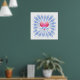 Mit Gott ist alles möglich! Glauben und haben Vertrauen, Gott ist immer bei uns. Farbenfrohe blaue Postersonnen mit glänzendem Herz.