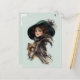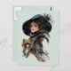 Eine reizende Vintage Szene mit einer modischen Dame in einem großen eleganten Hut, der ihren kleinen Hund hält.