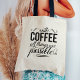 Mit Kaffee an Ihrer Seite können Sie die Welt erobern! Niedliche Typografie Totbeutel mit "Mit Kaffee, alles ist möglich" in schwarzem Text. Verwenden Sie das optionale Personalisierungsfeld, um einen Namen oder eine Nachricht Ihrer Wahl hinzuzufügen.
