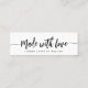 Made mit Liebe! Einfache moderne Mini-Visitenkarten mit Ihrer persönlichen Botschaft der Wertschätzung oder danke für die Kunden auf der Rückseite. Handgeschriebene Schriften mit eleganter Typografie sorgen für ein minimalistisches, hübsches Design.