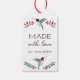 Hübsches individualisierbares Geschenkschild "Made with Liebe" mit handgemalten botanischen Zweigen in Aquarellfarbe und rubingebeutelten Hummingbirds.