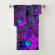 Personalisieren Sie das Monogramm auf diesem Coolen Groovy Bath Handtücher Set, das einen trippy Black, Lila und Magenta Retro Liquid Swirl mit Marmor Hot Pink, Orange, Aqua und Lila Akzenten bietet. Das Ergebnis ist ein cooles, psychedelisches, groovatives, abstraktes Design, dass Sie Liebe!