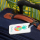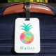 Erklärung Gepäckanhänger zur einfachen Identifizierung Ihres Gepäcks. Helle tropische Ananas. Personalisieren Sie den Schriftart mit Ihrem Namen oder Initial. Schriftart Stil und Farbe können angepasst werden. Die Rückseite des Gepäckanhängers kann mit der Informationskarte personalisiert werden.