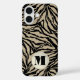 Ein stilvolles Handy-Gehäuse mit dem Monogramm-Initial auf einem beigen und schwarzen wilden Tiermuster. WÄHLEN SIE IHR MODELL UND MAKER, WENN SIE BESTELLEN! Schaffen Sie sich selbst oder geben Sie als Geschenk. Passend zu den Zugsack, Gepäckanhänger und weiteren Artikeln in unserer Reisekollektion.