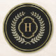 Mit Monogramm Black & Gold Glitzer Wreath-Wappen Runder Pappuntersetzer