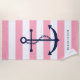 Mit Monogramm blauer Anker auf rosa Streifen Strandtuch