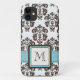 Mit Monogramm blaues Brown-Damast Case-Mate iPhone Hülle