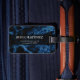 Mit Monogramm blauer Glitzer und weiße Funken auf schwarzem Hintergrund