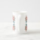 Elegante Tasse aus China mit weißen Knochen, mit farbigen Blumengrafiken und einem Single Buchstaben Monogramm, vorne. Die passende Teekanne steht zur Verfügung.