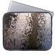 Ein einzigartiger Neoprenschlauch, der sich für Ihr Laptop individuell gestaltet, mit Monogramm und einem abstrakten, wirbelnden, schimmernden, schlangenförmigen, braunen und silberweißen Muster aus einem digitalen Design von Judy Adamson. Sie können Monogramm oder Initialen anpassen, indem Sie den Schriftart oder die Farbe ändern oder ganz löschen. Dieses Design wird jedem Sleeve passen.