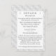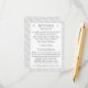 Das Design zeigt die weiße Spitze als Hintergrund Ihrer Information, die in einem silbernen Schriftart mit weißem Hintergrund angezeigt wird. Monogramm der ersten Initialen von Braut und Bräutigam werden oben auf jeder Seite der Position angezeigt. Der erste Nachname des Paares wird in einem großen, weißen Schriftart auf der gegenüberliegenden Seite angezeigt. Sehr elegant. Konzipiert zur Koordination mit der Mit Monogramm Hochzeitssuite-Kollektion von White Lace.