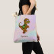 Niedlicher, farbenfroher Baby Dinosaurier über abstraktem verschwommenem Hologramm. Optionales Monogramm