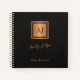 Luxuriöse exklusive Namenssignatur, Doppelmonogramm und Ihr Schreibbüro oder persönliches Spiralheft mit einem Imitat aus metallischem Gold, quadratisch, auf einem stilvollen, schwarzen Imitat Leder (PRINTED) Hintergrund. +++++++++++++++ Geeignet für kleine Unternehmen, Firmenfachleute oder selbstständige Geschäftsleute, Studierende, Stylist- und Markenfachleute, Makeup-Künstler oder Schönheitssalons sowie Boutique- oder Ladenmanager.
