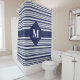 Mit Monogramm dunkelblaue und weiße Streifen Duschvorhang