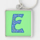 Mit Monogramm E blaues Blumenmuster Schlüsselanhänger