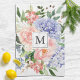 Genießen Sie den Esstisch mit unserem Mit Monogramm Watercolor Blue Pink Spring Floral Küchentuch. Mit einer pastellfarbenen Palette von blauen Hydrangea, rosafarbenen Torfmotiven und Rose ist dies ein blühendes Stück, das mit der Frühlingssaison übereinstimmt.