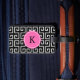 Schwarz-Weiß geometrisches Muster mit Monogramm. Das Design ist geometrisch in Schwarz-Weiß gehalten und in der Mitte befindet sich ein rosafarbener Kreis.