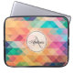 Der farbenfrohe Laptop-Ärmel weist ein geometrisches Muster mit Dreiecken und Quadraten in Rosa, lila, Orange und Grün auf, das auf einem halbtransparenten, weißen Rundrahmen mit individualisierbarem Namen und Monogramm in Schwarz und Grau dargestellt ist. Klicken Sie auf Diese Vorlage personalisieren, um Ihren Namen und Ihr Monogramm hinzuzufügen. Klicken Sie auf Anpassen, um weitere Optionen (Stil und Position des Schriftartes) zu erhalten.