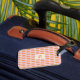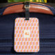 Mit diesem mit Monogramm Anhänger aus der Mitte des Jahrhunderts mit einem modernen inspirierten Muster aus Mandarine, Rose und Muschelfarben heben Sie Ihr Gepäck hervor.