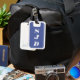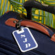 Das Design weist einen blauen Hintergrund für die Initialen auf, die in einem übersichtlichen, leicht lesbaren, weißen Schriftart angezeigt werden. Das Design wird durch einen weißen Rahmen gerahmt. Mit diesem Anhänger verwechseln Sie Ihr Gepäck nicht!