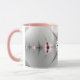 Diese moderne mädchenhafte Tasse zeichnet sich durch eine abstrakte symmetrische Fraktal-Kunst in Rosa und Silber (Grau) aus. Personalisieren Sie es mit einem Monogramm in einer passenden rosa Farbe.