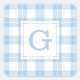Mit Monogramm, hellblaues und weißes Kariertes Mus Quadratischer Aufkleber