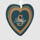 Reich aquamariner grüner Hintergrund mit goldfarbenem Herzüberlagern, umgeben von festlich roten Polka-Punkten; zeigt das Monogramm, den Namen und die Daten Ihres Liebsten. Auf der Rückseite ehrt "Forever in My Heart" deinen Lieben. Auch perfekt für ein geliebtes Haustier. Sie können die Daten löschen und den Text auf der Rückseite ändern.