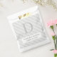 Das Design zeigt das Aussehen von weißer Spitze als Hintergrund zum Monogramm des Nachnamens des Paares. Die ersten Namen des Ehepaares und das Hochzeitstermin werden unten angezeigt. Der Text wird mit einer weißen Unterlage angezeigt. Sehr elegant. Konzipiert zur Koordination mit der Mit Monogramm Hochzeitssuite-Kollektion von White Lace.