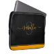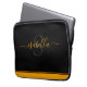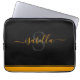 Einfache moderne Skript personalisierte Laptop-Hülle für Ihren Laptop. Das elegante, orangefarbene Schriftzeichen auf schwarz passt sich dem Liniendesign an, gleicht es aber im Stil aus und schafft so eine lustige Drehung zum minimalistischen Look.