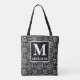 personalisierter mit Monogramm , schwarz-weißer Fleckendämpfer, gemustert über die gesamte Tasche