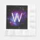 Single-Brief mit weißem Monogramm gegen das Weltraumbild des blauen und lila Galaxienhaufens MACS J0717 dank NASA und Hubble-Programm.